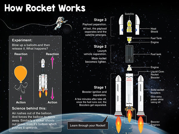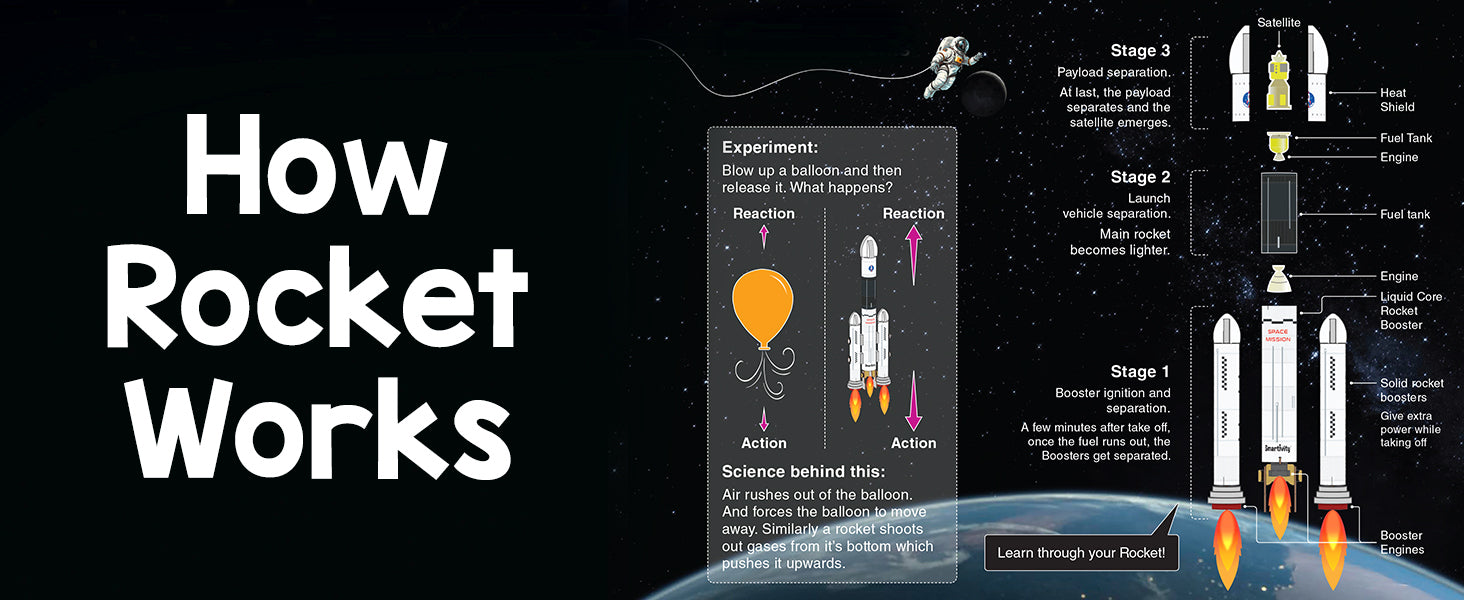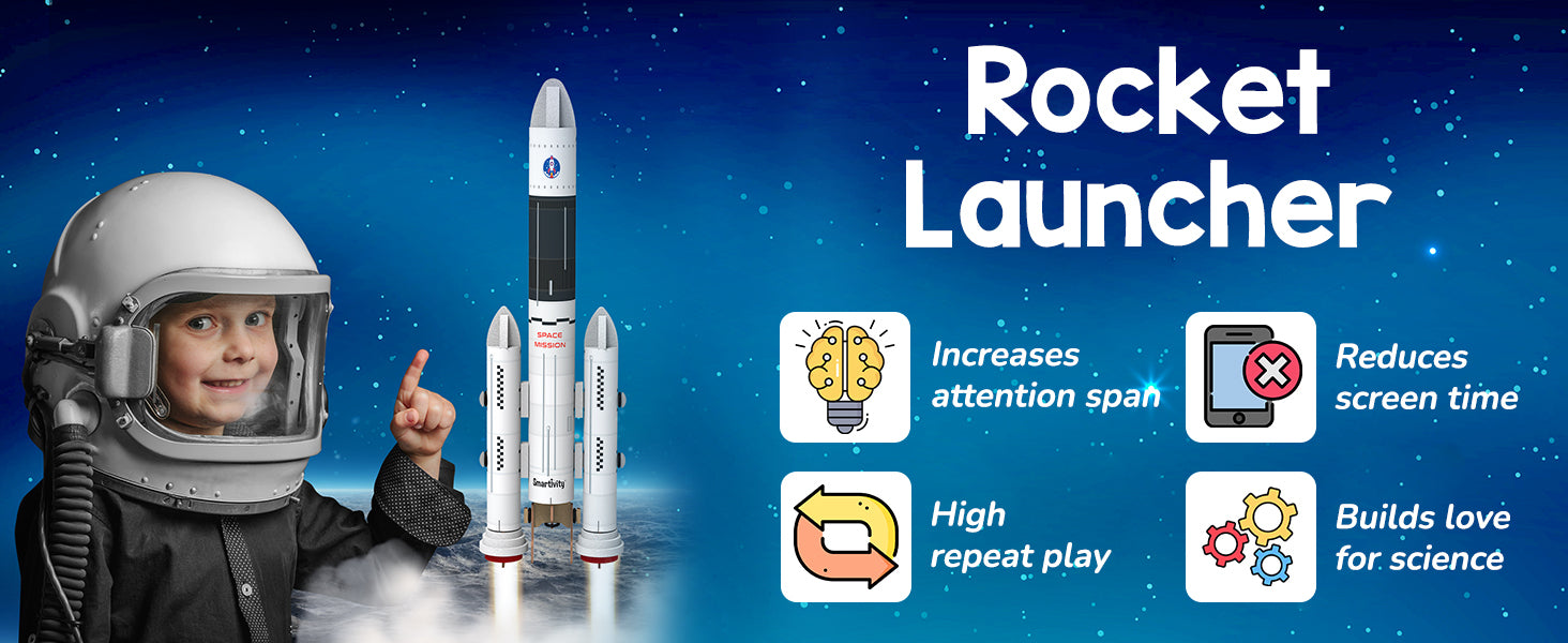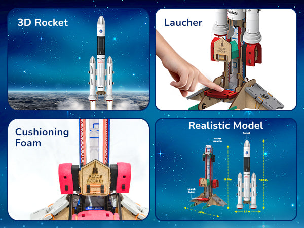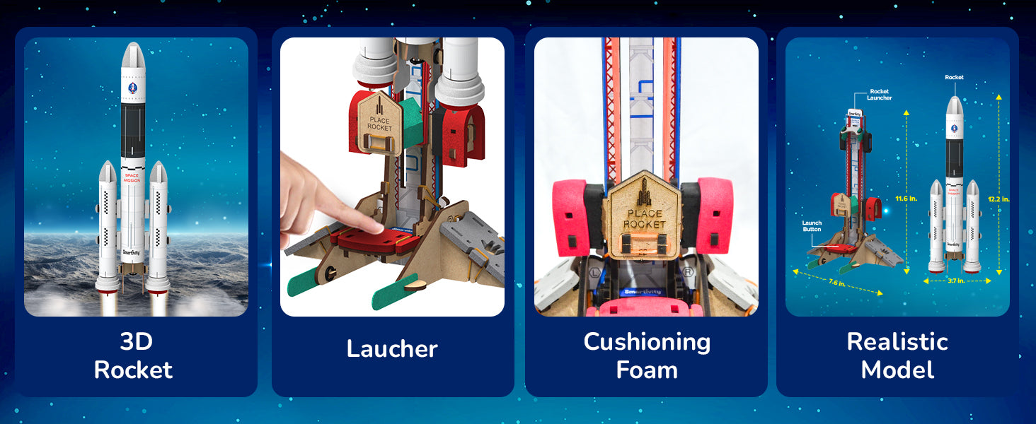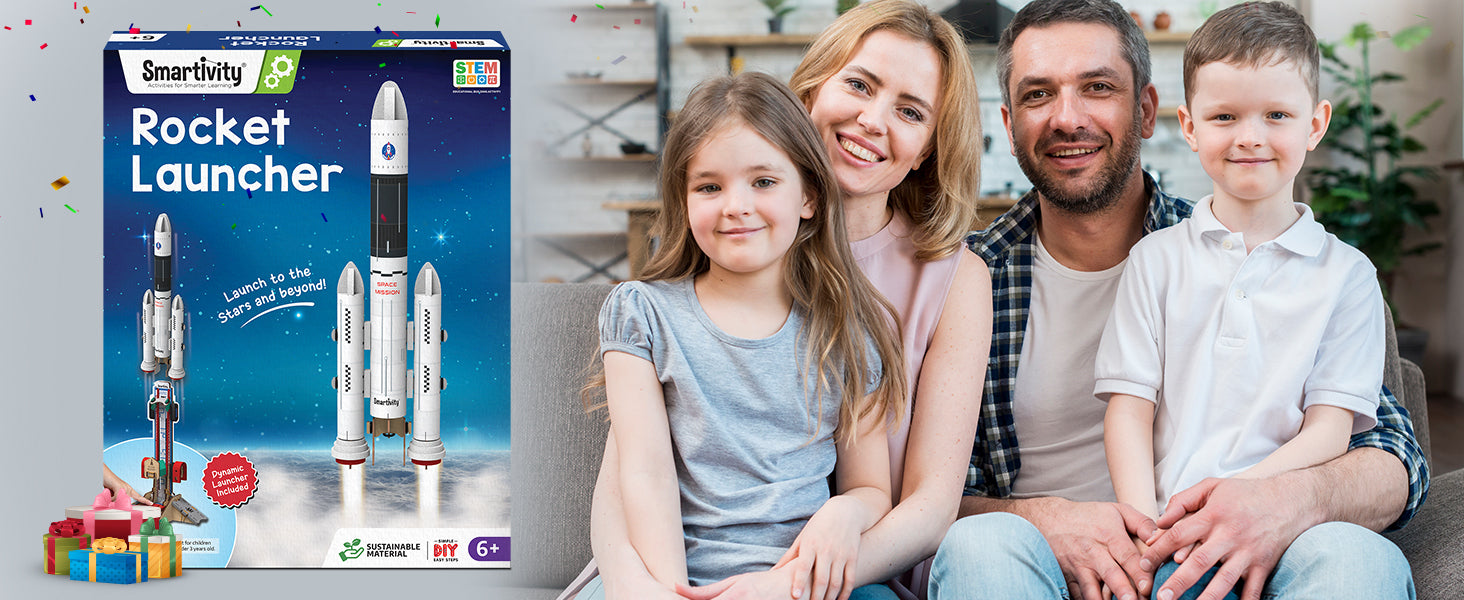 Have you ever wondered how rockets travel to space? With this kit, your child will build their own Rocket Launcher. Your child will first create a realistic Rocket. They will then load the Rocket on a durable Launcher and press the Launch button. Now, watch the Launcher thrust the Rocket safely into the air! The kit comes with easy-to- follow instructions, explanations of STEM concepts, and experiments which your child can perform independently.